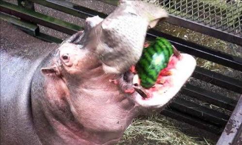 其次,吃瓜有助于河马消化。河马的胃很大,但消化能力却相对较弱。吃瓜可以促进肠胃蠕动,帮助消化。而且,瓜果中的水分和纤维还能补充河马所需的水分和营养。